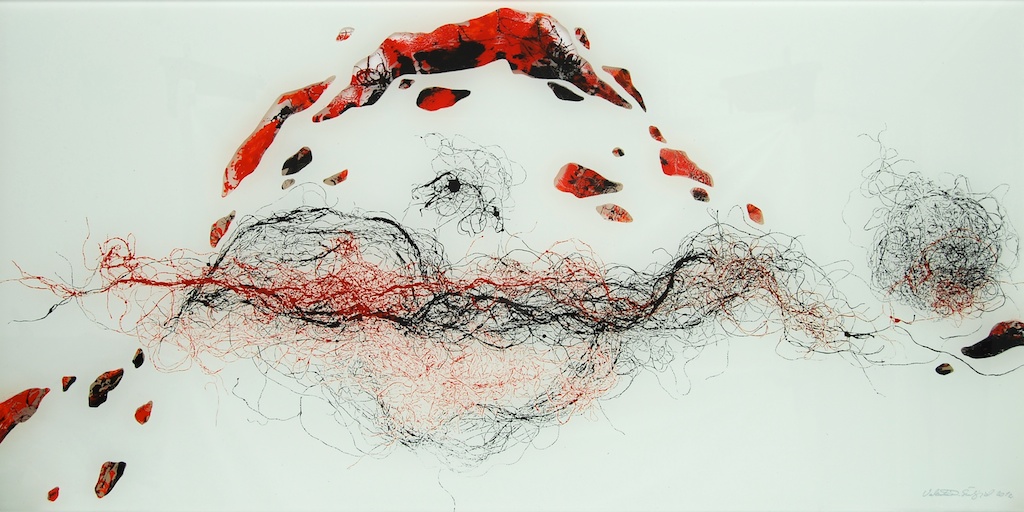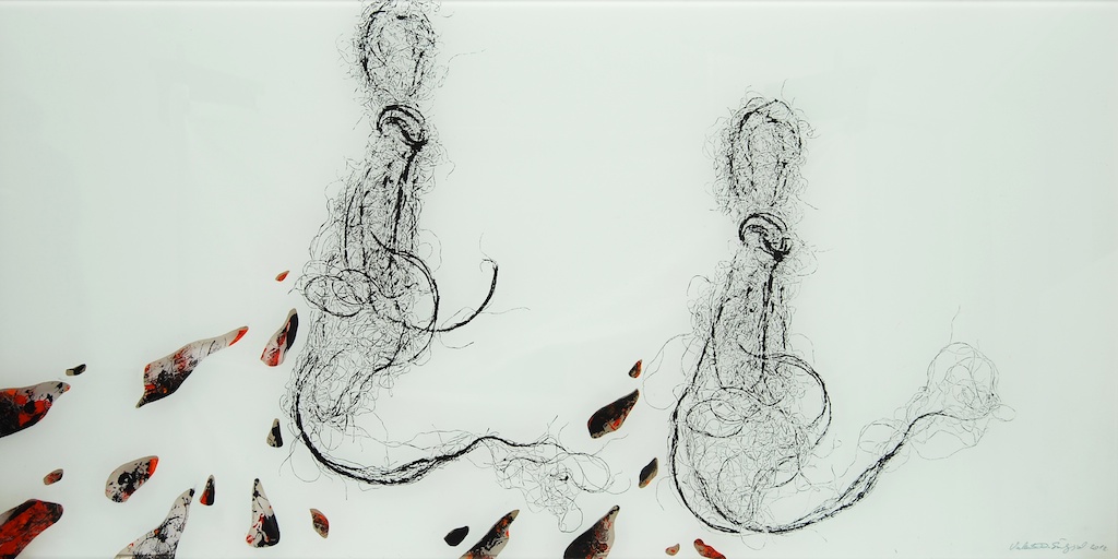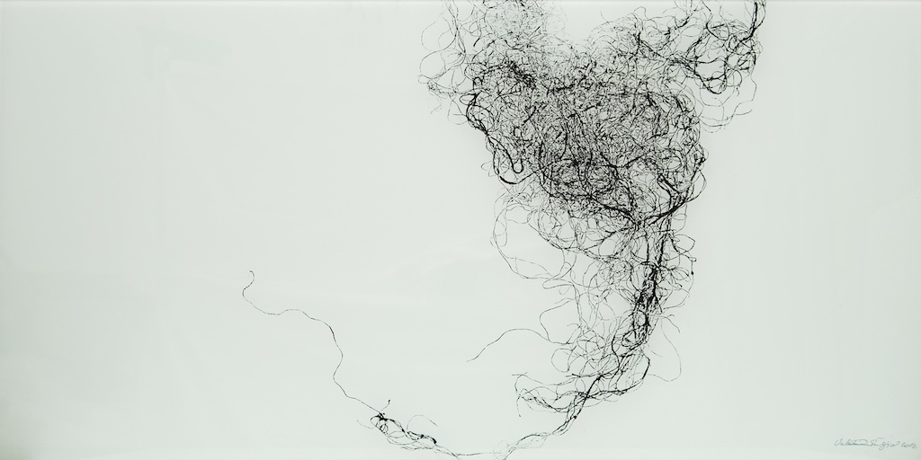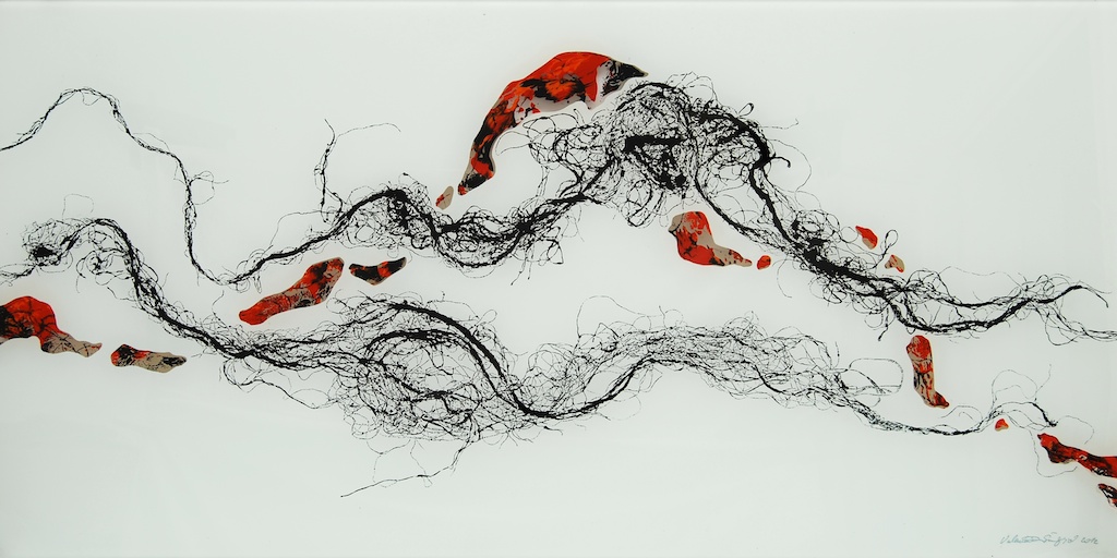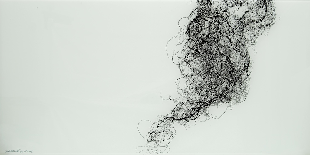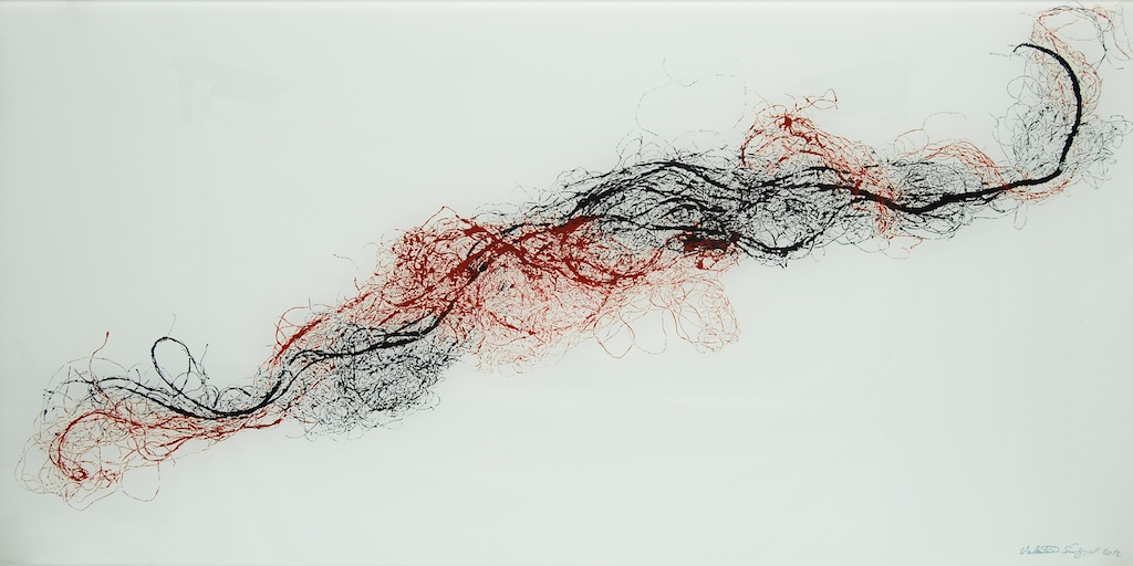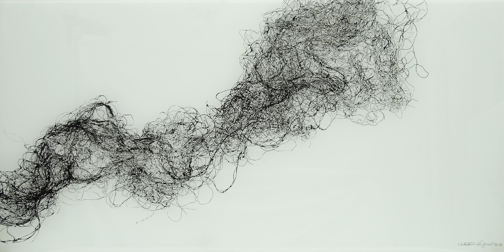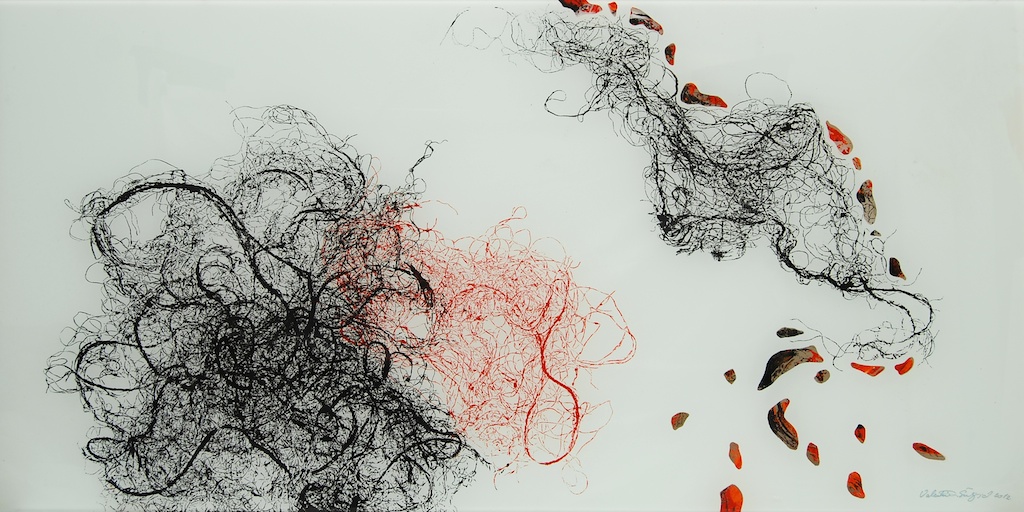 Dinamičnost kretanja, vrtlozi, mirni tijek zgusnutog crtovlja, izdvojenost nekoliko linija do siluetarne čitkosti tek su neki od načina vidljivih u sabiranju i razdvajanju gradivnih jedinki kojima Valentina osmišljava početnu prazninu. Dakako, odnos prema praznini plohe mijenja se opredmećenjem linija u segmentu polja, kojih jeka dovodi do punog likovnog aktiviteta prividno neutralnih partija. Dosegnuta efektnost nikako nije sama sebi svrhom, već je rezultat kreativne igre u suodnosu pulsiranja svjetla i krhkosti linija, nastalih dodirom tanahnih izdanaka vegetabilnog podrijetla. Valentina je ovoga puta kao „model“ u teksturi monotipije odabrala niti agave i rasprostrla ih je u slapovitoj oblikovnosti blage dijagonalnosti u horizontalno organiziranoj sceni. Slika je zaustavljeni kadar kretanja, dolaska i odlaska vibrantne forme, s neprekidnom promjenom ritmičkih očišta. Brojne partikule u jedinstvenosti forme mogući su preslik organičkog sklada, pravilnosti prepuštene energiji silnica. Valentina Šuljić i pri jasnoj ideji dopušta i faktor slučajnosti u kretanju napetih i zakrivljenih linija.